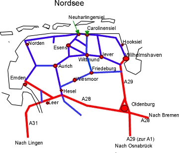 Oldenburg die Autobahn A 29 in Richtung Wilhelmshaven bis zum Wilhelmshavener
